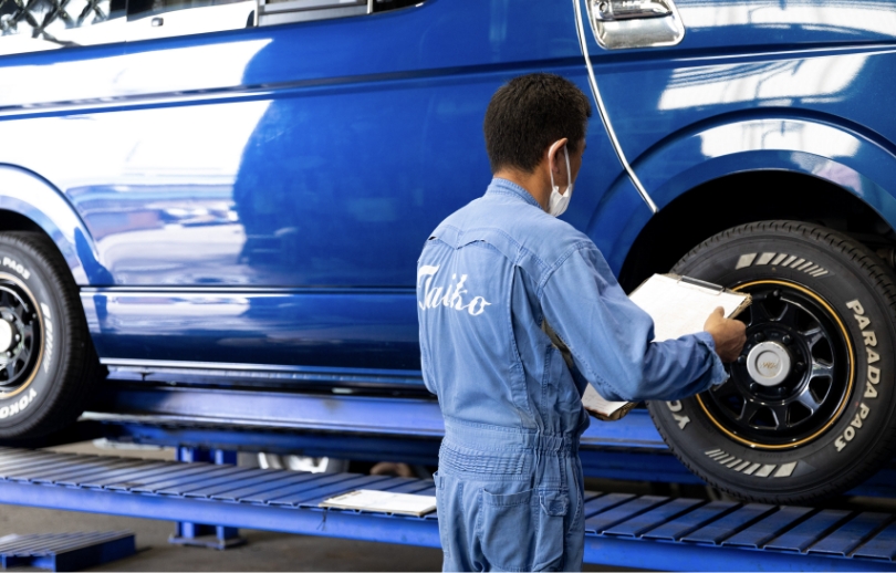 車検証(原本)、自賠責保険証明書(原本)、納税証明書(原本)、法定費用(現金)をご用意ください。点検の場合は必要なものはございません。
